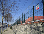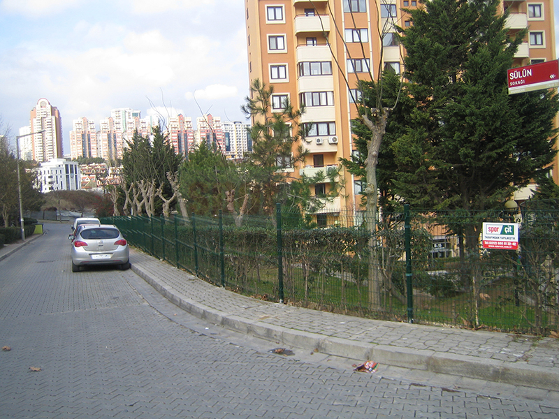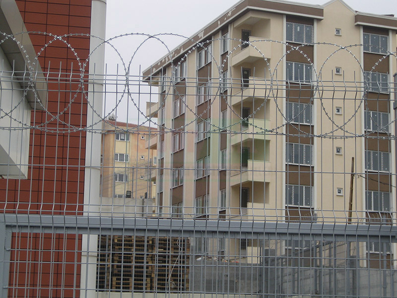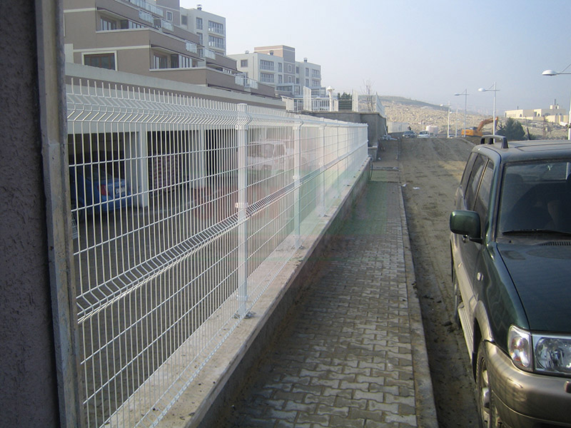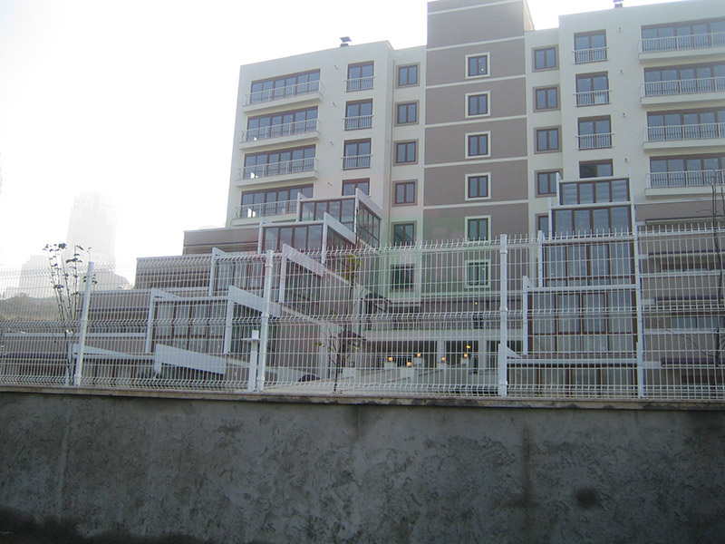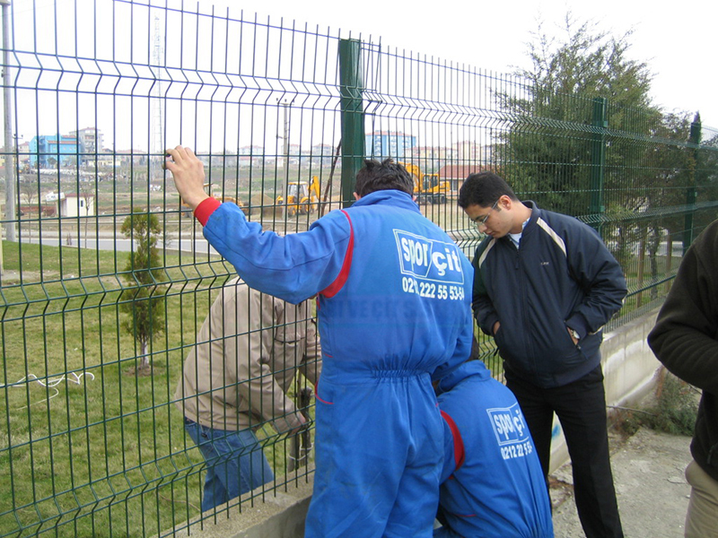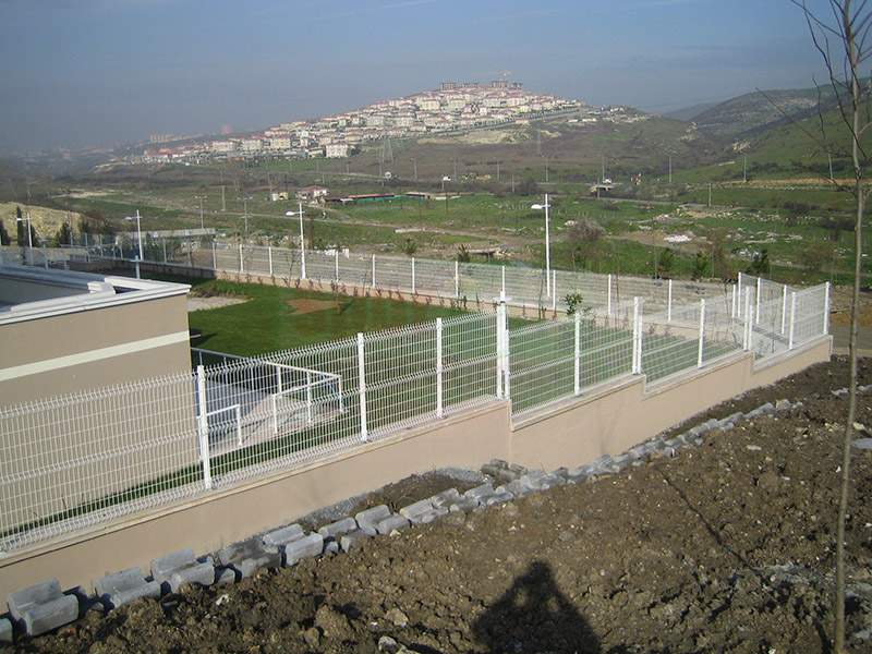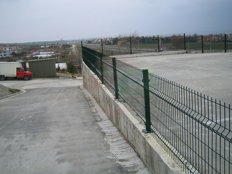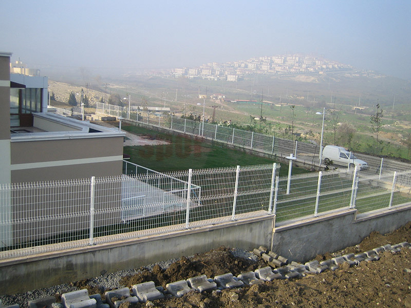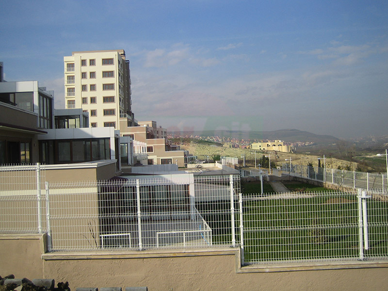 Brüt 1,50m-1,70m ve 2,00m uzunluğundaki tabanı flanş kaynaklı Y şeklindeki 60x2mm boru çit direkleri takribi 3,00m ara ile önceden betonarme perde duvar üzerine 4 adet çelik dübel yardımı monte edilecektir.Dikilen direklere 1,50m-1,70m veya 2,00m yüksekliğinde PVC kaplamalı veya galvaniz kaplamalı örgü teli monte edilir.Örgü telinin esnemesini önlemek için 3 sıra gergi teli çekilir,üst V kısma 45cm veya 60cm lik paslanmaz jiletli tel çekilerek montaj işlemi tamamlanır. Boruların üst açık kısımları özel boru kapakları ile kapatılır.