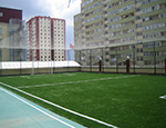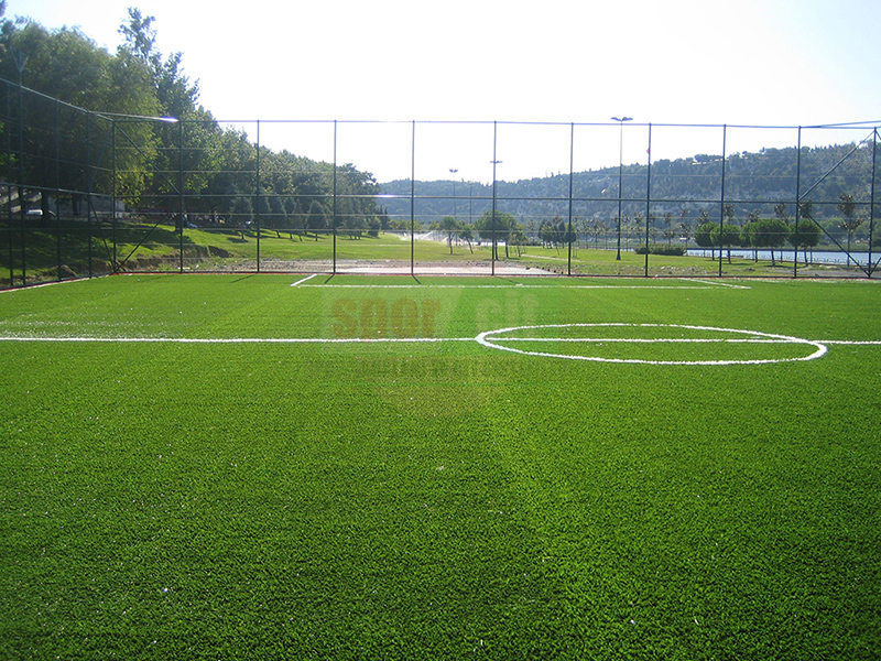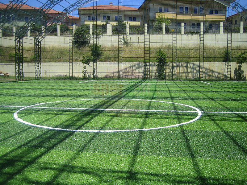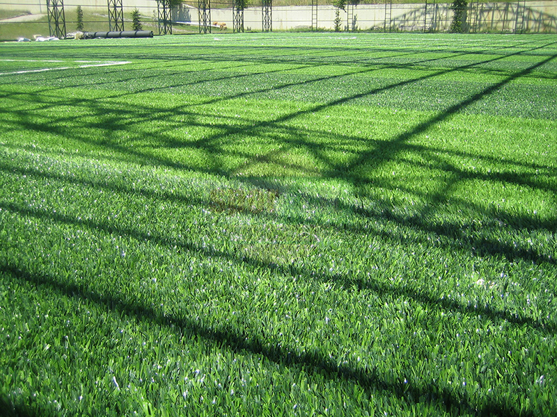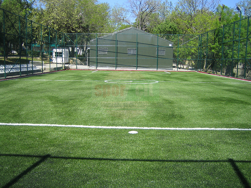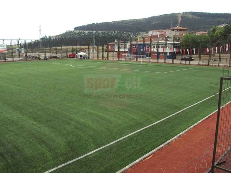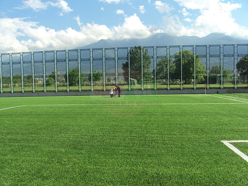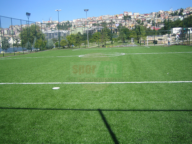 Hazırlanan dolgu zemin üzerine komple sahayı kaplayacak şekilde halı taban malzemesi jeotekstil malzemesi (keçe) serilerek üzerine tercih edilecek olan 40-50-55mm hav yüksekliğindeki çim halı özel yapıştırıcısı ile helmetin bezi kullanılarak zemine serilir. Montajı yapılan çim halının üzerine özel kuars kum, SBR lastik granül serilir ve futbol oyun çizgileri çizilerek tamamlanır.