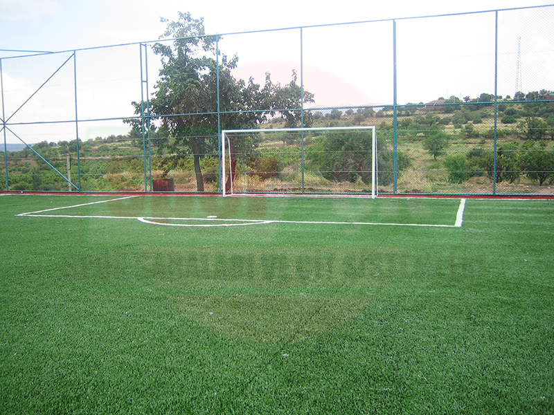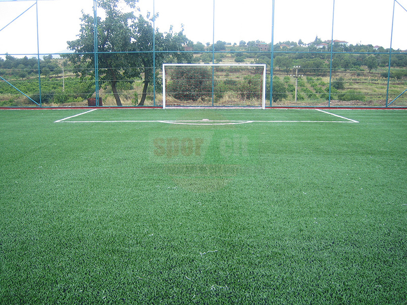 Sahanın inşa edileceği alan düzgün bir şekilde işveren tarafından tesviye yapıldıktan sonra 20cm toprağın içinde kalacak şekilde sahanın etrafı 50x30cm çevre hatılı ile dönülür. Çevre hatılının betonu dökülmeden önce kalıbın içerisine 3,00m ara ile ankreaj boruları düzgün bir şekilde yerleştirilir.(Tel-çit direkleri için) Hatıl betonu atıldıktan sonra oluşan havuzun içerisine 20cm yüksekliğinde 4 ve 5 numara mıcır ile doldurularak sıkıştırılır. Bu sıkıştırılmış zemin üzerine ortalama 10cm 1 numara mıcırla üst dolgu yapılır.Yukarıdaki işlemler sırasında sahanın silindirle sık sık gezdirilerek zeminin iyice oturması sağlanır ve halı kaplamaya hazır hale getirilir.
